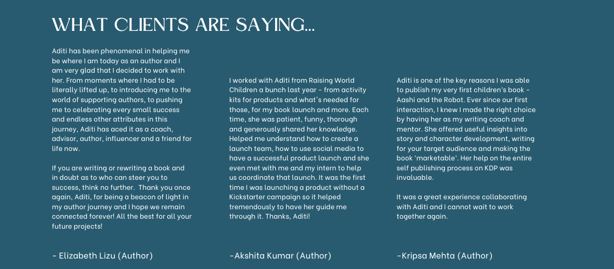 If you would like to work with Aditi to have your book edited or assistance on publishing, email or DM us to ask about the same.